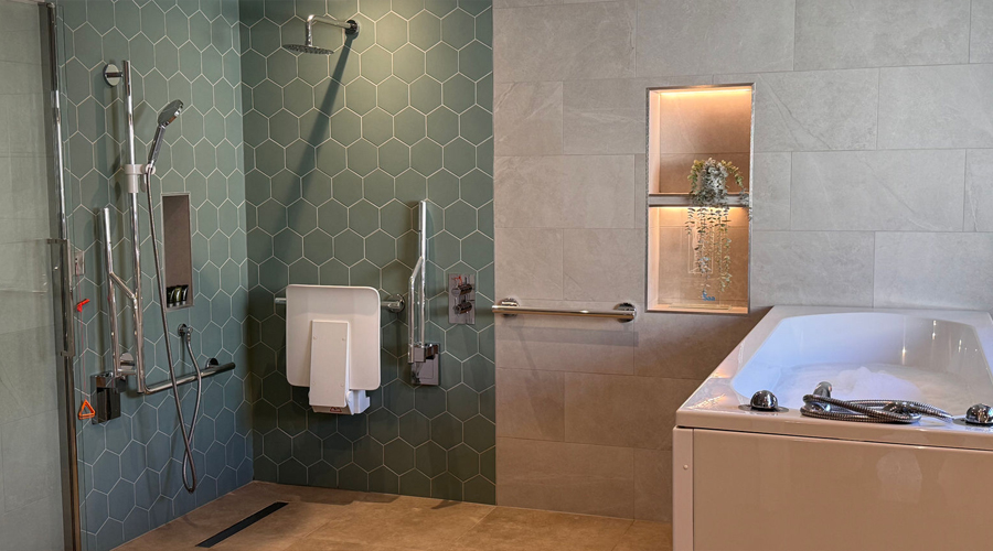 - Full Room Coverage: The master bedroom features an X-Y ceiling track hoist that transitions seamlessly from the bed into the en-suite wet room.
