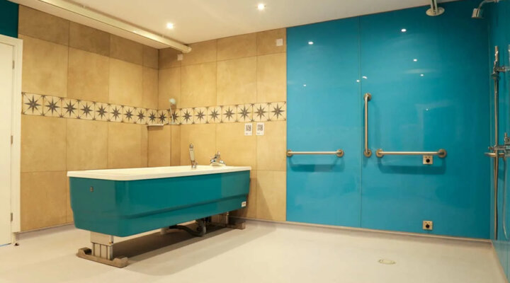 - The Bathroom: A Fine and Able designer bathroom featuring an Astor Bannerman height-adjustable bath and Rifton HTS shower chairs as well as a height adjustable Timo shower/changing trolley.