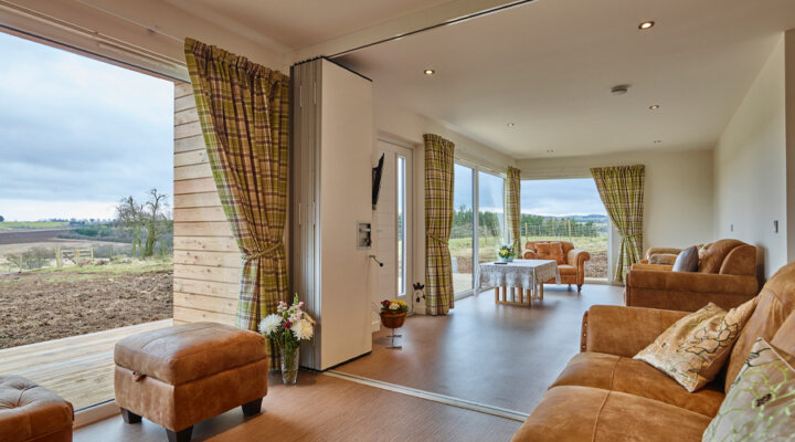 A flexible, award-winning farm-stay set within 90 acres of quiet Scottish countryside. The design is bright and airy, with huge windows that bring the outside in, and the unique layout can be adapted to suit small families or large groups. It’s a place that feels deeply inclusive, catering to physical, sensory, and neurodivergent needs with equal care.