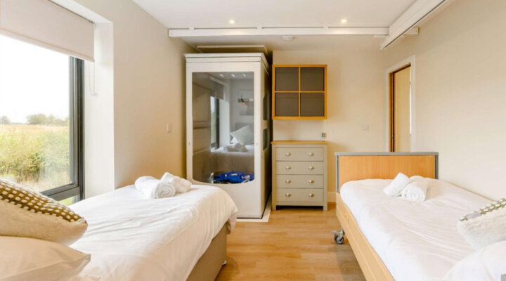- Clinical Excellence: Features Innova Liberta profiling beds and a ceiling track hoist (Innova AirGlide) from the bedroom directly into the bathroom.